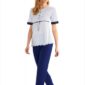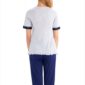 Round neck, button fastenings, short sleeve, lace embroidered pajama top and under waist rubber pajamas